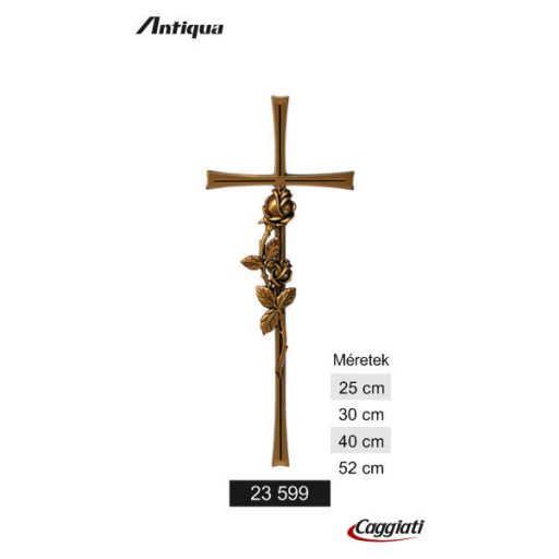 Caggiati kereszt rózsa motívummal. Elegáns és időtálló kialakítású kereszt, amely könnyen falra rögzíthető. Tökéletes választás temetkezési emlékművek és beltéri dekorációk kiegészítésére, harmonizálva a Caggiati stílusjegyekkel.