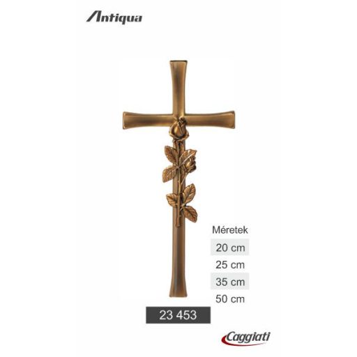 Caggiati kereszt rózsa motívummal. Elegáns és időtálló kialakítású kereszt, amely könnyen falra rögzíthető. Tökéletes választás temetkezési emlékművek és beltéri dekorációk kiegészítésére, harmonizálva a Caggiati stílusjegyekkel.