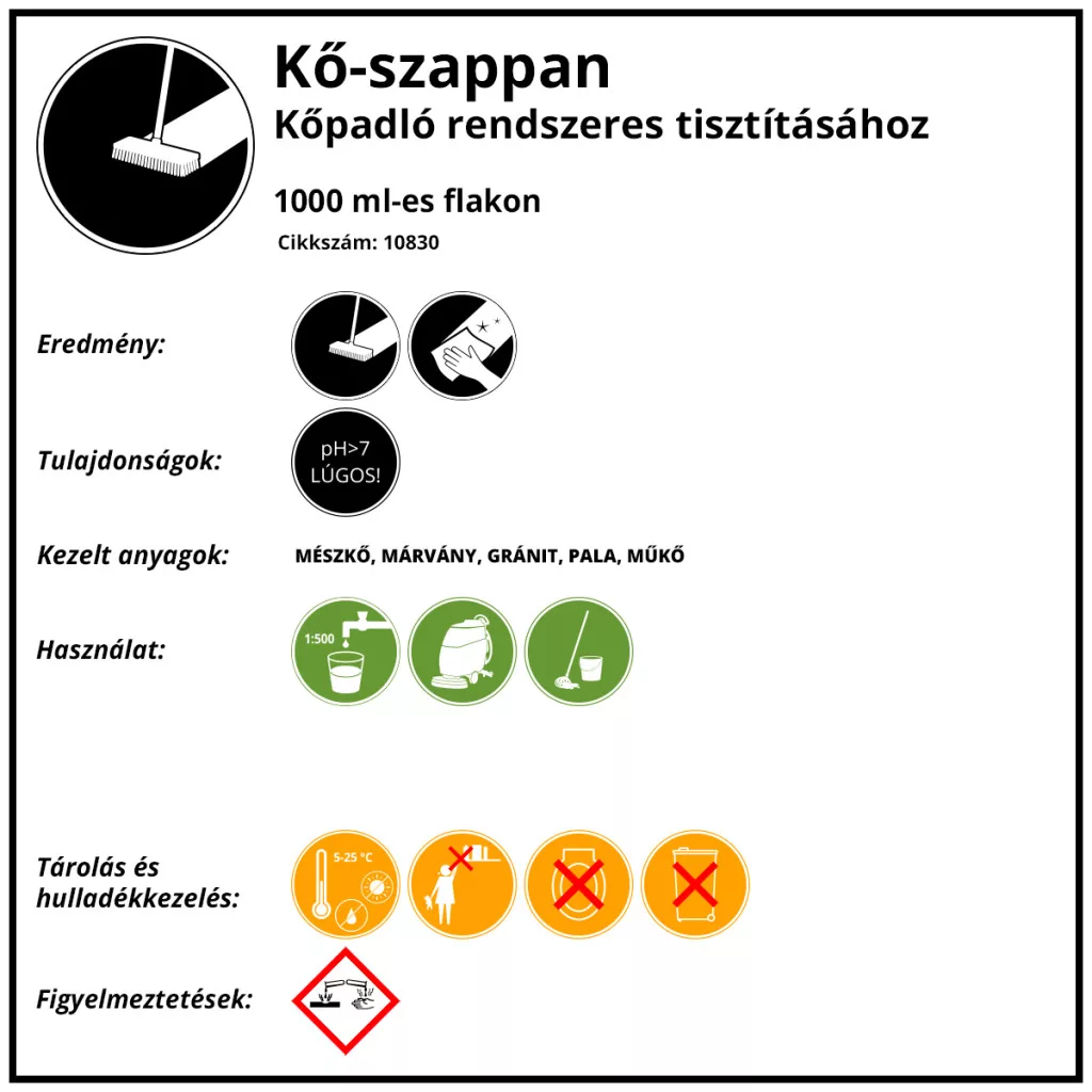 A Mild Stone Soap egy koncentrált tisztítószer, amely kiváló minőségű ápolóanyagokat tartalmaz, foszfát-, lúg-, viasz- és polimermantes, könnyen lebomló összetételű. Ideális természetes és mesterséges kövek rendszeres tisztítására és ápolására, megőrzi a kő szerkezetét és színét, valamint alkalmas cotto, terrakotta, terres quites felületekre és mázatlan agyagcsempékre is. 1000 ml