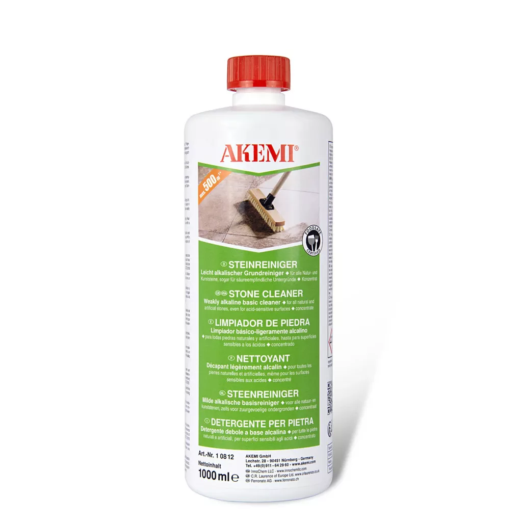 Az Akemi Stone Cleaner egy enyhén lúgos, magas koncentrációjú tisztítószer, amely foszfát- és lúgmentes, valamint könnyen lebomló tensideket tartalmaz, így környezetbarát megoldást kínál. A terméket egy külső német vizsgálóintézet tanúsította, hogy élelmiszeripari környezetben is alkalmazható, ami tovább növeli sokoldalú felhasználhatóságát.