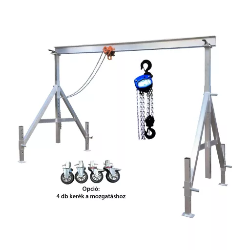 - Csörlő magasság: Az állítható csörlő magassága 1660 mm és 3010 mm között mozog, így sokoldalúan alkalmazható különböző emelési helyzetekben.