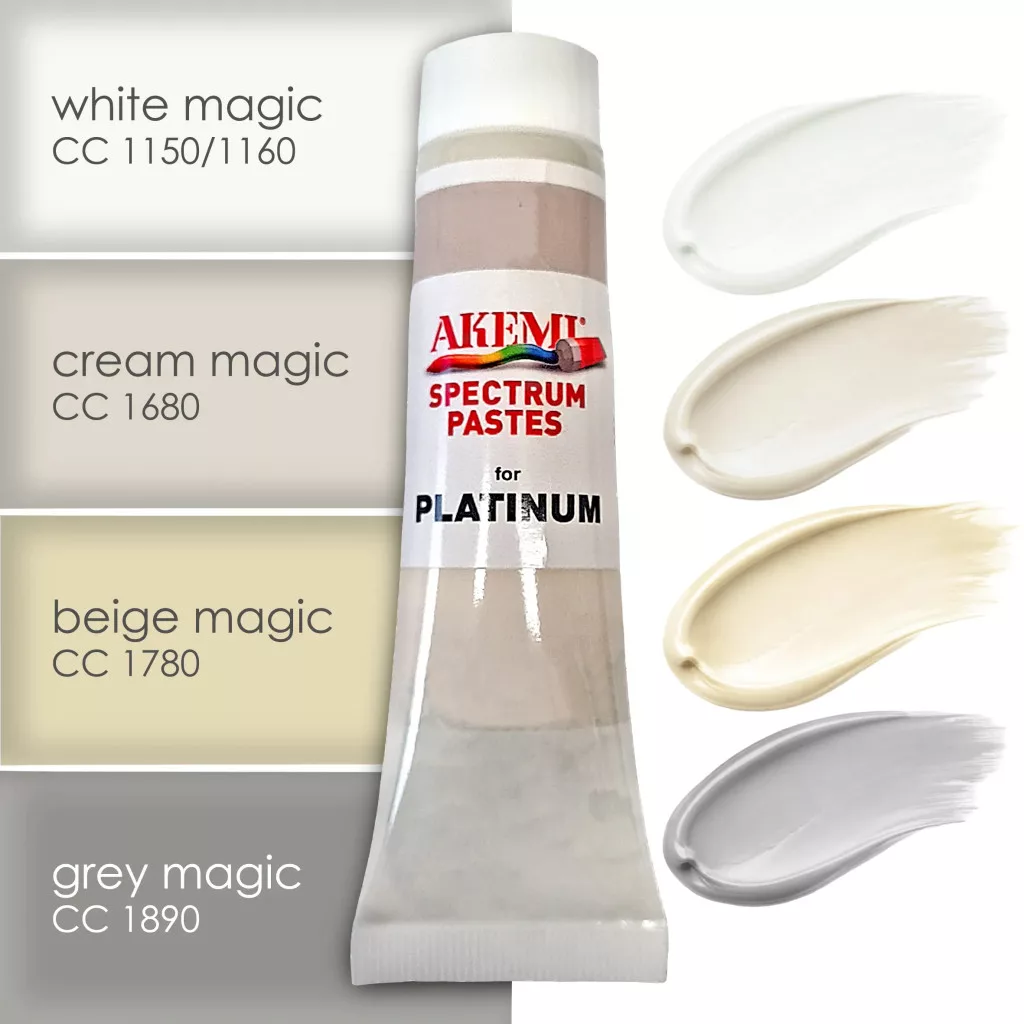 Spectrum Pastes: Színezőpaszta, amely a PLATINUM P+ (epoxyakrilát ragasztó) színezésére szolgál. Színminták különféle kvarc- és kerámiatermékekhez érhetők el. Alkalmas továbbá AKEMI poliészter tömítőanyagokhoz és ragasztókhoz, valamint EVERCLEAR-termékekhez (dobozos kiszerelésben).